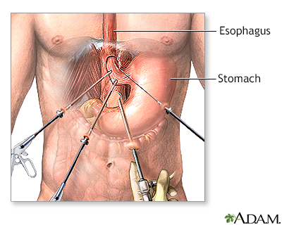 BACK TOTOP Browse A-ZSearchBrowse A-ZABCDEFGHIJKLMNOPQRSTUVWXYZ0-9 E-mail FormEmail ResultsName:Email address:Recipients Name:Recipients address:Message: Print-FriendlyBookmarksbookmarks-menuAchalasiaEsophageal achalasia; Swallowing problems for liquids and solids; Cardiospasm - lower esophageal sphincter spasmThe tube that carries food from the mouth to the stomach is the esophagus or food pipe. Achalasia makes it harder for the esophagus to move food into the stomach. Causes There is a muscular ring at the point where the esophagus and stomach meet. It is called the lower esophageal sphincter (LES). Normally, this muscle relaxes when you swallow to allow food to pass into the stomach. In people with achalasia, it does not relax as it should. In addition, the normal muscle activity of the esophagus (peristalsis) is reduced or absent.This problem is caused by damage to the nerves of the esophagus.Other problems can cause similar symptoms, such as cancer of the esophagus or upper stomach, and a parasite infection that causes Chagas disease, which is more common in Mexico and Central and South America.Chagas diseaseChagas disease is an illness caused by tiny parasites and spread by insects. The disease is common in South and Central America.ImageRead Article Now Book Mark Article Achalasia is rare. It may occur at any age, but is most common in people ages 25 to 60. In some people, the problem may be inherited. Symptoms Symptoms include:Backflow (regurgitation) of food Chest pain, which may increase after eating, or may be felt as pain in the back, neck, and arms Chest painChest pain is discomfort or pain that you feel anywhere along the front of your body between your neck and upper abdomen.ImageRead Article Now Book Mark Article Cough Difficulty swallowing liquids and solids Heartburn HeartburnHeartburn is a painful burning feeling just below or behind the breastbone. Most of the time, it comes from the esophagus. The pain often rises in ...ImageRead Article Now Book Mark Article Unintentional weight loss Exams and Tests Physical exam may show signs of anemia or malnutrition.AnemiaAnemia is a condition in which the body does not have enough healthy red blood cells. Red blood cells provide oxygen to body tissues. Different type...ImageRead Article Now Book Mark Article MalnutritionMalnutrition is the condition that occurs when your body does not get enough nutrients.ImageRead Article Now Book Mark Article Tests include:Esophageal manometry, a test to measure if your esophagus is working properly. Esophageal manometryEsophageal manometry is a test to measure how well the esophagus is working.ImageRead Article Now Book Mark Article Functional luminal imaging probe (FLIP). Creates a high resolution 3D image of your esophagus and its movements. EGD or upper endoscopy, a test to examine the lining of the stomach and esophagus. It uses a flexible tube and camera. EGDEsophagogastroduodenoscopy (EGD) is a test to examine the lining of the esophagus, stomach, and first part of the small intestine (the duodenum)....ImageRead Article Now Book Mark Article Upper GI x-ray.Upper GI x-rayAn upper GI and small bowel series is a set of x-rays taken to examine the esophagus, stomach, and small intestine. Barium enema is a different test ...ImageRead Article Now Book Mark Article Treatment The goal of treatment is to reduce the pressure at the sphincter muscle and allow food and liquids to pass easily into the stomach. Therapy may involve:Injection with botulinum toxin (Botox) -- This may help relax the sphincter muscles. However, the benefit wears off within a few weeks or months. Medicines, such as long-acting nitrates or calcium channel blockers -- These medicines can be used to relax the lower esophagus sphincter. But there is rarely a long-term solution with medicines to treat achalasia. Surgery (called a myotomy) -- In this procedure, the lower sphincter muscle is cut. This procedure is usually performed using a laparoscope. It can now sometimes be performed during EGD instead of traditional surgery. Widening (dilation) of the esophagus -- This is done during EGD by stretching the LES with a balloon dilator.Your health care provider can help you decide which treatment is best for you. Outlook (Prognosis) The outcomes of surgery and non-surgical treatments are similar. However, depending on the type of achalasia you have, your provider may recommend a particular procedure. More than one treatment is sometimes necessary. Possible Complications Complications may include:Backflow (regurgitation) of acid or food from the stomach into the esophagus (reflux) Breathing food contents into the lungs (aspiration), which can cause pneumonia Tearing (perforation) of the esophagus When to Contact a Medical Professional Contact your provider if:You have trouble swallowing or painful swallowing Your symptoms continue, even with treatment for achalasia Prevention Many of the causes of achalasia cannot be prevented. However, treatment may help to prevent complications.Open ReferencesReferencesBok-yan So J. The management of achalasia and other motility disorders of the oesophagus. In: Lamb PJ, ed. Oesophagogastric Surgery: A Companion to Specialist Surgical Practice. 7th ed. Philadelphia, PA: Elsevier; 2024:chap 14.Falk GW, Katzka DA. Diseases of the esophagus. In: Goldman L, Cooney KA, eds. Goldman-Cecil Medicine. 27th ed. Philadelphia, PA: Elsevier; 2024:chap 124.Pandolfino JE, Kahrilas PJ. Esophageal neuromuscular function and motility disorders. In: Feldman M, Friedman LS, Brandt LJ, eds. Sleisenger and Fordtran's Gastrointestinal and Liver Disease. 11th ed. Philadelphia, PA: Elsevier; 2021:chap 44.AllVideoImagesTogDigestive system - illustration The esophagus, stomach, large and small intestine, aided by the liver, gallbladder and pancreas convert the nutritive components of food into energy and break down the non-nutritive components into waste to be excreted.Digestive systemillustrationUpper gastrointestinal sys