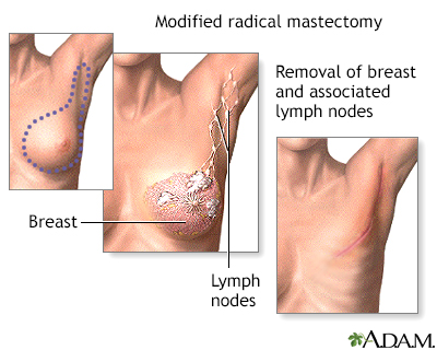 BACK TOTOP Browse A-ZSearchBrowse A-ZABCDEFGHIJKLMNOPQRSTUVWXYZ0-9 MastectomyBack E-mail FormEmail ResultsName:Email address:Recipients Name:Recipients address:Message: Review Date: 11/10/2019 Reviewed By: David C. Dugdale, III, MD, Professor of Medicine, Division of General Medicine, Department of Medicine, University of Washington School of Medicine. Also reviewed by David Zieve, MD, MHA, Medical Director, Brenda Conaway, Editorial Director, and the A.D.A.M. Editorial team. The information provided herein should not be used during any medical emergency or for the diagnosis or treatment of any medical condition. A licensed medical professional should be consulted for diagnosis and treatment of any and all medical conditions. Links to other sites are provided for information only -- they do not constitute endorsements of those other sites. No warranty of any kind, either expressed or implied, is made as to the accuracy, reliability, timeliness, or correctness of any translations made by a third-party service of the information provided herein into any other language. © 1997- A.D.A.M., a business unit of Ebix, Inc. Any duplication or distribution of the information contained herein is strictly prohibited. © 1997- All rights reserved. A.D.A.M. content is best viewed in IE9 or above, Firefox and Google Chrome browser.Content is best viewed in IE9 or above, Firefox and Google Chrome browser.