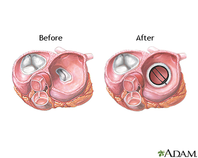 BACK TOTOP Browse A-ZSearchBrowse A-ZABCDEFGHIJKLMNOPQRSTUVWXYZ0-9 E-mail FormEmail ResultsName:Email address:Recipients Name:Recipients address:Message: Print-FriendlyBookmarksbookmarks-menuEndocarditisValve infection; Staphylococcus aureus - endocarditis; Enterococcus - endocarditis; Streptococcus viridans - endocarditis; Candida - endocarditisEndocarditis is inflammation of the inside lining of the heart chambers and heart valves (endocardium). It is most often caused by a bacterial or, rarely, a fungal infection.Previous imagePlay SlideshowStop SlideshowNext image / Causes Endocarditis can involve the heart muscle, heart valves, or lining of the heart. Some people who develop endocarditis have a:Birth defect of the heart Birth defect of the heartCongenital heart disease (CHD) is a problem with the heart's structure and function that is present at birth.ImageRead Article Now Book Mark Article Damaged or abnormal heart valve History of endocarditis New heart valve after surgery Parenteral (intravenous) drug use disorder or addiction Long-term intravenous line in placeEndocarditis begins when germs enter the bloodstream and then travel to the heart.Bacterial infection is the most common cause of endocarditis. Endocarditis can also be caused by fungi, such as Candida. In some cases, no cause can be found.Germs are most likely to enter the bloodstream during: Central venous access lines Injection drug use, from the use of unclean (unsterile) needles Recent dental surgery Other surgeries or minor procedures to the breathing tract, urinary tract, infected skin, or bones and muscles Symptoms Symptoms of endocarditis may develop slowly or suddenly.Fever, chills, and sweating are frequent symptoms. These sometimes can:FeverFever is the temporary increase in the body's temperature in response to a disease or illness. A child has a fever when the temperature is at or abov...ImageRead Article Now Book Mark Article ChillsChills refers to feeling cold after being in a cold environment. The word can also refer to an episode of shivering along with paleness and feeling ...ImageRead Article Now Book Mark Article SweatingSweating is the release of liquid from the body's sweat glands. This liquid contains salt. This process is also called perspiration. Sweating helps...ImageRead Article Now Book Mark Article Be present for days before any other symptoms appear Come and go, or be more noticeable at nighttime You may also have fatigue, weakness, weight loss, loss of appetite, and aches and pains in the muscles or joints. FatigueFatigue is a feeling of weariness, tiredness, or lack of energy.ImageRead Article Now Book Mark Article WeaknessWeakness is reduced strength in one or more muscles.ImageRead Article Now Book Mark Article MusclesMuscle aches and pains are common and can involve more than one muscle. Pain due to muscles can also be felt in ligaments, tendons, and fascia. Fas...ImageRead Article Now Book Mark Article JointsJoint pain can affect one or more joints.ImageRead Article Now Book Mark Article Other signs can include:Small areas of bleeding under the nails (splinter hemorrhages) Splinter hemorrhagesSplinter hemorrhages are small areas of bleeding (hemorrhage) under the fingernails or toenails.ImageRead Article Now Book Mark Article Red, painless skin spots on the palms and soles (Janeway lesions) Red, painful nodes in the pads of the fingers and toes (Osler nodes) Shortness of breath with activity Shortness of breathBreathing difficulty may involve:Difficult breathing Uncomfortable breathingFeeling like you are not getting enough airImageRead Article Now Book Mark Article Swelling of feet, legs, abdomen Exams and Tests The health care provider may detect a new heart murmur, or a change in an existing heart murmur. Heart murmurA heart murmur is a blowing, whooshing, or rasping sound heard during a heartbeat. The sound is caused by turbulent (rough) blood flow through the h...ImageRead Article Now Book Mark Article An eye exam may show bleeding in the retina and a central area of clearing. This finding is known as Roth spots. There may be small, pinpoint areas of bleeding on the surface of the eye or the eyelids called petechiae.Tests that may be done include:Blood culture to identify the bacteria or fungus that is causing the infection Blood cultureA blood culture is a laboratory test to check for bacteria or other germs in a blood sample.ImageRead Article Now Book Mark Article Complete blood count (CBC), C-reactive protein (CRP), or erythrocyte sedimentation rate (ESR) Complete blood countA complete blood count (CBC) test measures the following:The number of white blood cells (WBC count)The number of red blood cells (RBC count)The numb...ImageRead Article Now Book Mark Article Erythrocyte sedimentation rateESR stands for erythrocyte sedimentation rate. It is commonly called a "sed rate. "It is a test that indirectly measures the level of certain protei...ImageRead Article Now Book Mark Article An echocardiogram to look at the heart valves EchocardiogramAn echocardiogram is a test that uses sound waves to create pictures of the heart. The picture and information it produces is more detailed than a s...ImageRead Article Now Book Mark Article Treatment You may need to be in the hospital to get antibiotics through a vein (IV or intravenously). Blood cultures and tests will help your provider choose the best antibiotic.You will then need long-term antibiotic therapy.People most often need therapy for 4 to 6 weeks to kill all the bacteria from the heart chambers and valves. Antibiotic treatments that are started in the hospital will need to be continued at home. Surgery to replace the heart valve is often needed when:The infection is breaking off into little pieces, resulting in strokes or blockages of other arteries. The person develops heart failure as a result of damaged heart valves. There is evidence of more severe organ damage (such as heart damage). Outlook (Prognosis) Getting treatment for 