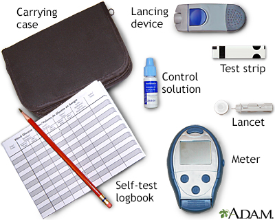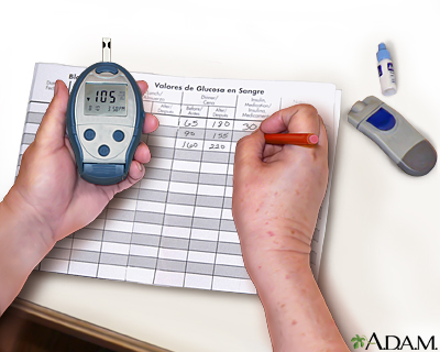 BACK TOTOP Browse A-ZSearchBrowse A-ZABCDEFGHIJKLMNOPQRSTUVWXYZ0-9 E-mail FormEmail ResultsName:Email address:Recipients Name:Recipients address:Message: Print-FriendlyBookmarksbookmarks-menuDiabetesDiabetes - type 1; Diabetes - type 2; Diabetes - gestational; Type 1 diabetes; Type 2 diabetes; Gestational diabetes; Diabetes mellitusDiabetes is a long-term (chronic) disease in which the body cannot regulate the amount of sugar in the blood.Related video goes here for no-HTML5 browsers Causes Insulin is a hormone produced by the pancreas to control blood sugar. Diabetes can be caused by too little insulin, resistance to the action of insulin, or both.To understand diabetes, it is important to first understand the normal process by which food is broken down and used by the body for energy. Several things happen when food is digested and absorbed:A sugar called glucose enters the bloodstream. Glucose is a source of fuel for the body. An organ in the upper abdomen, below and behind the stomach, called the pancreas makes insulin. The role of insulin is to move glucose from the bloodstream into muscle, fat, and other cells, where it can be stored or used as fuel. Previous imagePlay SlideshowStop SlideshowNext image / People with diabetes have high blood sugar because their body cannot move sugar from the blood into muscle and fat cells to be burned or stored for energy, or because their liver makes too much glucose and releases it into the blood. This is because:Their pancreas does not make enough insulin Their cells do not respond to insulin normally (also called insulin resistance) Both of the above There are two major types of diabetes. The causes and risk factors are different for each type:Previous imagePlay SlideshowStop SlideshowNext image / Type 1 diabetes is less common, accounting for 5% to 10% of people with diabetes in the United States. It can occur at any age, but it is most often diagnosed in children, teens, or young adults. In this disease, the body makes little or no insulin. This is because the pancreas cells that make insulin are damaged by an immune process and stop working. Daily injections of insulin are needed. The exact cause of the immune process is unknown. Type 1 diabetesType 1 diabetes is a lifelong (chronic) disease in which there is a high level of sugar (glucose) in the blood.ImageRead Article Now Book Mark Article Type 2 diabetes is more common, accounting for 90% to 95% of people with diabetes in the United States. It most often occurs in adulthood, but because of high obesity rates, children and teens are now being diagnosed with this disease. Some people with type 2 diabetes do not know they have it. With type 2 diabetes, the body is resistant to insulin and doesn't use insulin as well as it should. Not all people with type 2 diabetes are overweight or obese. Type 2 diabetesType 2 diabetes is a lifelong (chronic) disease in which there is a high level of sugar (glucose) in the blood. Type 2 diabetes is the most common f...ImageRead Article Now Book Mark Article There are other causes of diabetes, and some people cannot be classified as type 1 or type 2. Examples include LADA (latent autoimmune diabetes in adults, a variant of type 1 diabetes), MODY (maturity-onset diabetes of the young), and diabetes due to other illnesses.Gestational diabetes is diagnosed when high blood sugar develops at any time during pregnancy in a woman who does not already have diabetes.Gestational diabetesGestational diabetes is high blood sugar (glucose) that starts or is first diagnosed during pregnancy.ImageRead Article Now Book Mark Article If your parent, brother, or sister has diabetes, you are more likely to develop the disease.Type 2 Diabetes Facts QuizIf you eat too much sugar over a long time, you may develop type 2 diabetes. A. True B. False Correct Answer The correct answer is false. Diabetes is caused by a problem in the way your body makes or uses the hormone insulin. Insulin helps move blood sugar (glucose) into cells, where it is stored to be used for energy. Eating too much sugar won't cause diabetes. But it may make you overweight, which can put you at risk for diabetes. In addition, eating too much sugar or other dietary carbohydrate can raise the blood sugar of someone with diabetes.Being overweight makes it harder for your body to properly use insulin. A. True B. False Correct Answer The correct answer is true. Extra fat in the body makes it harder for the body to use insulin properly. This is called insulin resistance. Losing excess weight and being physically active can help prevent or reverse insulin resistance.Which of the following health conditions does NOT put you at risk for type 2 diabetes? A. Having diabetes during pregnancy (gestational diabetes) B. Having three or more risk factors for heart disease and diabetes (metabolic syndrome) C. Polycystic ovarian syndrome (PCOS) D. Asthma Correct Answer The correct answer is asthma. All of the other conditions increase your risk for diabetes. If you have any of these conditions, work with your doctor to control your risk factors for diabetes and heart disease.You can have diabetes for years and not know it. A. True B. False Correct Answer The correct answer is true. That's why it's important to talk with your doctor about whether you should have diabetes screening tests. People who are age 35 and older who have overweight or obesity should consider being tested for prediabetes and type 2 diabetes.What are early symptoms of type 2 diabetes? A. No symptoms at all B. Bladder, kidney, or skin infections that are more frequent or heal slowly C. Fatigue D. Increased thirst E. Needing to urinate a lot F. All of the above Correct Answer The correct answer is all of the above. If you notice any of these symptoms, talk with your doctor.If you have a blood sugar level higher than ____ , your doctor may test you for diabetes. A. 100 mg/dL B. 200 mg/dL C. 400mg/dL Correct Answer The correct answer is 200 mg/dL. If your bloo