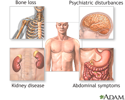 BACK TOTOP Browse A-ZSearchBrowse A-ZABCDEFGHIJKLMNOPQRSTUVWXYZ0-9 E-mail FormEmail ResultsName:Email address:Recipients Name:Recipients address:Message: Print-FriendlyBookmarksbookmarks-menuParathyroid gland removalRemoval of parathyroid gland; Parathyroidectomy; Hyperparathyroidism - parathyroidectomy; PTH - parathyroidectomyParathyroidectomy is surgery to remove the parathyroid glands or parathyroid tumors. The parathyroid glands are right behind your thyroid gland in your neck. These glands help your body regulate the calcium level in your blood. Description You will receive general anesthesia (asleep and pain-free) for this surgery. General anesthesiaGeneral anesthesia is treatment with certain medicines that puts you into a deep sleep-like state so you do not feel pain during surgery. After you ...Read Article Now Book Mark Article Usually the parathyroid glands are removed using a 2 to 4 inch (in) or 5 to 10 centimeters (cm) surgical cut on your neck. During surgery:The cut is usually made in the center of your neck just under your Adam's apple. Your surgeon will look for the four parathyroid glands and remove any that are diseased. You may have a special blood test during surgery that will tell if all the diseased glands were removed. In rare cases, when all four of these glands need to be removed, part of one is transplanted into the forearm. Or, it is transplanted into a muscle in the front of your neck next to the thyroid gland. This helps ensure your body's calcium level stays at a healthy level. The specific type of surgery depends on where the diseased parathyroid glands are. Types of surgery include:Minimally invasive parathyroidectomy. You may receive a shot of a very small amount of radioactive tracer before this surgery. This helps highlight the diseased glands. If you have this shot, your surgeon will use a special probe, like a Geiger counter, to locate the parathyroid gland. Your surgeon will make a small cut (1 to 2 in; or 2.5 to 5 cm) on one side of your neck, and then remove the diseased gland through it. This procedure takes about 1 hour. Video-assisted parathyroidectomy. Your surgeon will make two small cuts in your neck. One is for instruments, and the other is for a scope with a camera. Your surgeon will use the camera to view the area and will remove the diseased glands with the instruments. Endoscopic parathyroidectomy. Your surgeon will make two or three small cuts in the front of your neck and one cut above the top of your collarbone. This reduces visible scarring, pain, and recovery time. This cut is less than 2 in (5 cm) long. The procedure to remove any diseased parathyroid glands is similar to video-assisted parathyroidectomy. Why the Procedure Is Performed Your health care provider may recommend this surgery if one or more of your parathyroid glands is producing too much parathyroid hormone. This condition is called hyperparathyroidism. It is often caused by a small non-cancerous (benign) tumor called an adenoma.HyperparathyroidismHyperparathyroidism is a condition in which 1 or more of the parathyroid glands in your neck produce too much parathyroid hormone (PTH).ImageRead Article Now Book Mark Article Your surgeon will consider many factors when deciding whether to do surgery and what type of surgery would be best for you. Some of these factors are: Your age Calcium levels in your urine and blood Whether you have symptoms Risks Risks of anesthesia and surgery in general are:Reactions to medicines or breathing problems Breathing problemsBreathing difficulty may involve:Difficult breathing Uncomfortable breathingFeeling like you are not getting enough airImageRead Article Now Book Mark Article Bleeding, blood clots, or infection BleedingBleeding is the loss of blood. Bleeding may be:Inside the body (internal)Outside the body (external)Bleeding may occur:Inside the body when blood le...ImageRead Article Now Book Mark Article Blood clotsBlood clots are clumps that occur when blood hardens from a liquid to a solid. A blood clot that forms inside one of your veins or arteries is calle...ImageRead Article Now Book Mark Article Risks of parathyroidectomy are:Injury to the thyroid gland or the need to remove part of the thyroid gland. Hypoparathyroidism (parathyroid glands not producing enough parathyroid hormone). This can lead to low calcium levels that are dangerous to your health. HypoparathyroidismHypoparathyroidism is a disorder in which the parathyroid glands in the neck do not produce enough parathyroid hormone (PTH).ImageRead Article Now Book Mark Article Injury to the nerves going to the muscles that move your vocal cords. You may have a hoarse or weaker voice which could be temporary or permanent. Difficulty breathing. This is not common and usually goes away several weeks or months after surgery. Before the Procedure Parathyroid glands are very small. You may need to have tests that show exactly where your glands are. This will help your surgeon find your parathyroid glands during surgery. Two of the tests you may have are a CT scan and an ultrasound. Sometimes your surgeon will order a nuclear medicine scan, known as a Sestamibi scan prior to your surgery to locate all of the parathyroid glands.CT scanA computed tomography (CT) scan is an imaging method that uses x-rays to create pictures of cross-sections of the body. Related tests include:Abdomin...ImageRead Article Now Book Mark Article UltrasoundUltrasound uses high-frequency sound waves to make images of organs and structures inside the body.ImageRead Article Now Book Mark Article Tell your surgeon or nurse if:You are or could be pregnant You are taking any medicines, including medicines, supplements, or herbs you bought without a prescriptionDuring the week before your surgery:You may be asked to temporarily stop taking medicines that keep your blood from clotting. These medicines are called blood thinners. This includes over-the-counter medicines and supplements such as aspirin, ibuprofen