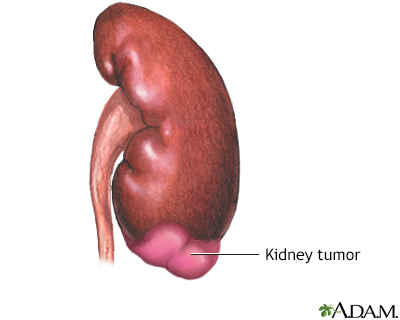 BACK TOTOP Browse A-ZSearchBrowse A-ZABCDEFGHIJKLMNOPQRSTUVWXYZ0-9 E-mail FormEmail ResultsName:Email address:Recipients Name:Recipients address:Message: Print-FriendlyBookmarksbookmarks-menuKidney removalNephrectomy; Simple nephrectomy; Radical nephrectomy; Open nephrectomy; Laparoscopic nephrectomy; Partial nephrectomyKidney removal, or nephrectomy, is surgery to remove all or part of a kidney. It may involve:Part of one kidney removed (partial nephrectomy). All of one kidney removed (simple nephrectomy). Removal of one entire kidney, surrounding fat, and the adrenal gland (radical nephrectomy). In these cases, neighboring lymph nodes are sometimes removed. Description This surgery is done in the hospital while you are asleep and pain-free (general anesthesia). The procedure can take 3 or more hours.Simple nephrectomy or open kidney removal:You will be lying on your side. Your surgeon will make an incision (cut) up to 12 inches or 30 centimeters (cm) long. This cut will be on your side, just below the ribs or right over the lowest ribs. Muscle, fat, and tissue are cut and moved. Your surgeon may need to remove a rib to do the procedure. The tube that carries urine from the kidney to the bladder (ureter) and blood vessels are cut away from the kidney. The kidney is then removed. Sometimes, just a part of the kidney may be removed (partial nephrectomy). The cut is then closed with stitches or staples. Radical nephrectomy or open kidney removal:Your surgeon will make a cut about 8 to 12 inches (20 to 30 cm) long. This cut will be on the front of your belly, just below your ribs. It may also be done through your side. Muscle, fat, and tissue are cut and moved. The tube that carries urine from the kidney to the bladder (ureter) and blood vessels are cut away from the kidney. The kidney is then removed. Your surgeon will also take out the surrounding fat, and sometimes the adrenal gland and some lymph nodes. The cut is then closed with stitches or staples. Laparoscopic kidney removal:Your surgeon will make 3 or 4 small cuts, most often no more than 1 inch (2.5 cm) each, in your belly and side. The surgeon will use tiny probes and a camera to do the surgery. Towards the end of the procedure, your surgeon will make one of the cuts larger (about 4 inches or 10 cm) to take out the kidney. The surgeon will cut the ureter, place a bag around the kidney, and pull it through the larger cut. This surgery may take longer than an open kidney removal. However, most people recover faster and feel less pain after this type of surgery when compared to the pain and recovery period following open surgery. Sometimes, your surgeon may make a cut in a different place than described above.Some hospitals and medical centers are doing this surgery using robotic tools. Surgery using robotic toolsRobotic surgery is a method to perform surgery using very small tools attached to a robotic arm. The surgeon controls the robotic arm with a compute...Read Article Now Book Mark Article Why the Procedure Is Performed Kidney removal may be recommended for:Someone donating a kidney Birth defects Kidney cancer or suspected kidney cancer Kidney cancerRenal cell carcinoma is a type of kidney cancer that starts in the lining of very small tubes (tubules) in the kidney.ImageRead Article Now Book Mark Article A kidney damaged by infection, kidney stones, or other problems Kidney stonesA kidney stone is a solid mass made up of tiny crystals. One or more stones can be in the kidney or ureter at the same time.ImageRead Article Now Book Mark Article To help control high blood pressure in someone who has problems with the blood supply to their kidney High blood pressureBlood pressure is a measurement of the force exerted against the walls of your arteries as your heart pumps blood to your body. Hypertension is the ...ImageRead Article Now Book Mark Article Very bad injury (trauma) to the kidney that cannot be repaired Risks Risks of any surgery are:Blood clots in the legs that may travel to the lungs Blood clotsBlood clots are clumps that occur when blood hardens from a liquid to a solid. A blood clot that forms inside one of your veins or arteries is calle...ImageRead Article Now Book Mark Article Breathing problems Breathing problemsBreathing difficulty may involve:Difficult breathing Uncomfortable breathingFeeling like you are not getting enough airImageRead Article Now Book Mark Article Infection, including in the surgical wound, lungs (pneumonia), bladder, or kidney PneumoniaPneumonia is inflamed or swollen lung tissue due to infection with a germ. This article covers community-acquired pneumonia (CAP). This type of pneu...ImageRead Article Now Book Mark Article Blood loss Blood lossBleeding is the loss of blood. Bleeding may be:Inside the body (internal)Outside the body (external)Bleeding may occur:Inside the body when blood le...ImageRead Article Now Book Mark Article Heart attack or stroke during surgery Heart attackMost heart attacks are caused by a blood clot that blocks one of the coronary arteries. The coronary arteries bring blood and oxygen to the heart. ...ImageRead Article Now Book Mark Article StrokeA stroke occurs when blood flow to a part of the brain stops. A stroke is sometimes called a "brain attack. " If blood flow is cut off for longer th...ImageRead Article Now Book Mark Article Reactions to medicinesRisks of this procedure are:Injury to other organs or structures Kidney failure in the remaining kidney Kidney failureAcute kidney failure is the rapid (less than 2 days) loss of your kidneys' ability to remove waste and help balance fluids and electrolytes in your b...ImageRead Article Now Book Mark Article After one kidney is removed, your other kidney may not work as well for awhile Hernia of your surgical woundHerniaA hernia is a sac formed by the lining of the abdominal cavity (peritoneum). The sac comes through a hole or weak area in the strong layer of the be...ImageRead Article Now Book Mark Article Before t