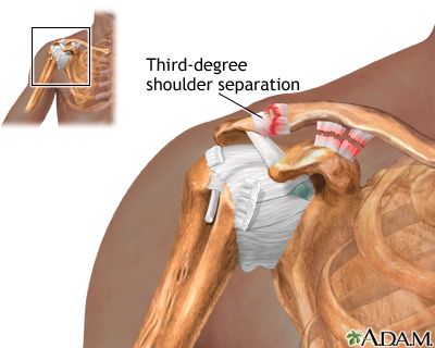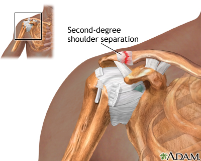 BACK TOTOP Browse A-ZSearchBrowse A-ZABCDEFGHIJKLMNOPQRSTUVWXYZ0-9 E-mail FormEmail ResultsName:Email address:Recipients Name:Recipients address:Message: Print-FriendlyBookmarksbookmarks-menuShoulder painPain - shoulderShoulder pain is any pain in or around the shoulder joint.Related video goes here for no-HTML5 browsers Considerations The shoulder is the most movable joint in the human body. A group of four muscles and their tendons, called the rotator cuff, give the shoulder its wide range of motion.Previous imagePlay SlideshowStop SlideshowNext image / Swelling, damage, or bone changes around the rotator cuff can cause shoulder pain. You may have pain when lifting the arm above your head or moving it forward or behind your back. Causes The most common cause of shoulder pain occurs when rotator cuff tendons become trapped under the bony area in the shoulder. The tendons become inflamed or damaged. This condition is called rotator cuff tendinitis or bursitis.Rotator cuff tendinitisThe rotator cuff is a group of muscles and tendons that attach to the bones of the shoulder joint, allowing the shoulder to move and keep it stable. ...ImageRead Article Now Book Mark Article Previous imagePlay SlideshowStop SlideshowNext image / Shoulder pain may also be caused by:Arthritis in the shoulder joint ArthritisArthritis is inflammation or degeneration of one or more joints. A joint is the area where 2 bones meet. There are more than 100 different types of...ImageRead Article Now Book Mark Article Bone spurs in the shoulder area Bursitis, which is inflammation of a fluid-filled sac (bursa) that normally protects the joint and helps it move smoothly BursitisBursitis is the swelling and irritation of a bursa. A bursa is a fluid-filled sac that acts as a cushion between muscles, tendons, and bones....ImageRead Article Now Book Mark Article Broken shoulder bone Dislocation of the shoulder Shoulder separation Frozen shoulder, which occurs when the muscles, tendons, and ligaments inside the shoulder become stiff, making movement difficult and painful Frozen shoulderFrozen shoulder is a condition in which the shoulder is painful and loses motion because of inflammation.ImageRead Article Now Book Mark Article Overuse or injury of nearby tendons, such as the bicep muscles of the arms Nerve injury that leads to abnormal shoulder movement Tears of the rotator cuff tendons Poor shoulder posture and mechanicsSometimes, shoulder pain may be due to a problem in another area of the body, such as the neck or lungs. This is called referred pain. There is usually pain at rest and no worsening of pain when moving the shoulder. Home Care Here are some tips for helping shoulder pain get better:Put ice on the shoulder area for 15 minutes, then leave it off for 15 minutes. Do this 3 to 4 times a day for 2 to 3 days. Wrap the ice in cloth. Do not put ice directly on the skin because this can result in frostbite. Rest your shoulder for the next few days. Slowly return to your regular activities. A physical therapist can help you do this safely. Taking ibuprofen or acetaminophen (such as Tylenol) may help reduce inflammation and pain. Rotator cuff problems can be treated at home also.Treated at homeThe rotator cuff is a group of muscles and tendons that attach to the bones of the shoulder joint, allowing the shoulder to move in a coordinated and...ImageRead Article Now Book Mark Article If you have had shoulder pain before, use ice and ibuprofen after exercising. Learn exercises to stretch and strengthen your rotator cuff tendons and shoulder muscles. A health care provider or physical therapist can recommend such exercises. If you are recovering from tendinitis, continue to do range-of-motion exercises to avoid frozen shoulder. Practice good posture to keep your shoulder muscles and tendons in their right positions. When to Contact a Medical Professional Sudden left shoulder pain can sometimes be a sign of a heart attack. Call 911 or the local emergency number if you have sudden pressure or crushing pain in your shoulder, especially if the pain runs from your chest to the left jaw, arm or neck, or occurs with shortness of breath, dizziness, or sweating.Heart attackMost heart attacks are caused by a blood clot that blocks one of the coronary arteries. The coronary arteries bring blood and oxygen to the heart. ...ImageRead Article Now Book Mark Article DizzinessDizziness is a term that is often used to describe 2 different symptoms: lightheadedness and vertigo. Lightheadedness is a feeling that you might fai...ImageRead Article Now Book Mark Article SweatingSweating is the release of liquid from the body's sweat glands. This liquid contains salt. This process is also called perspiration. Sweating helps...ImageRead Article Now Book Mark Article Previous imagePlay SlideshowStop SlideshowNext image / Go to the hospital emergency room if you have just had a severe injury and your shoulder is very painful, swollen, bruised, or bleeding.Call your provider if you have:Shoulder pain with a fever, swelling, or redness FeverFever is the temporary increase in the body's temperature in response to a disease or illness. A child has a fever when the temperature is at or abov...ImageRead Article Now Book Mark Article Significant pain even with moving the shoulder with the arm or by someone else Pain for more than 2 to 4 weeks, even after home treatment Swelling of the shoulder Red or blue color of the skin of the shoulder area What to Expect at Your Office Visit Your provider will perform a physical exam and closely look at your shoulder. You will be asked questions to help the provider understand your shoulder problem.Blood or imaging tests, such as x-rays or MRI, may be ordered to help diagnose the problem.MRIA magnetic resonance imaging (MRI) scan is an imaging test that uses powerful magnets and radio waves to create pictures of the body. It does not us...ImageRead Article Now Book Mark Article Your provider may recommend treatment for s
