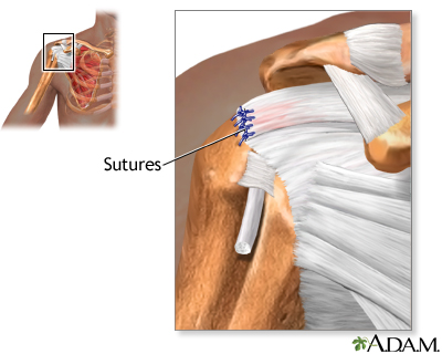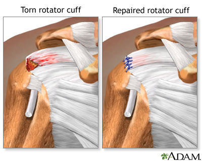 Shoulder painPain - shoulderShoulder pain is any pain in or around the shoulder joint.Related video goes here for no-HTML5 browsers Considerations The shoulder is the most movable joint in the human body. A group of four muscles and their tendons, called the rotator cuff, give the shoulder its wide range of motion.Previous imagePlay SlideshowStop SlideshowNext image / Swelling, damage, or bone changes around the rotator cuff can cause shoulder pain. You may have pain when lifting the arm above your head or moving it forward or behind your back. Causes The most common cause of shoulder pain occurs when rotator cuff tendons become trapped under the bony area in the shoulder. The tendons become inflamed or damaged. This condition is called rotator cuff tendinitis or bursitis.Rotator cuff tendinitisThe rotator cuff is a group of muscles and tendons that attach to the bones of the shoulder joint, allowing the shoulder to move and keep it stable. ...ImageRead Article Now Book Mark Article Previous imagePlay SlideshowStop SlideshowNext image / Shoulder pain may also be caused by:Arthritis in the shoulder joint ArthritisArthritis is inflammation or degeneration of one or more joints. A joint is the area where 2 bones meet. There are more than 100 different types of...ImageRead Article Now Book Mark Article Bone spurs in the shoulder area Bursitis, which is inflammation of a fluid-filled sac (bursa) that normally protects the joint and helps it move smoothly BursitisBursitis is the swelling and irritation of a bursa. A bursa is a fluid-filled sac that acts as a cushion between muscles, tendons, and bones....ImageRead Article Now Book Mark Article Broken shoulder bone Dislocation of the shoulder Shoulder separation Frozen shoulder, which occurs when the muscles, tendons, and ligaments inside the shoulder become stiff, making movement difficult and painful Frozen shoulderFrozen shoulder is a condition in which the shoulder is painful and loses motion because of inflammation.ImageRead Article Now Book Mark Article Overuse or injury of nearby tendons, such as the bicep muscles of the arms Nerve injury that leads to abnormal shoulder movement Tears of the rotator cuff tendons Poor shoulder posture and mechanicsSometimes, shoulder pain may be due to a problem in another area of the body, such as the neck or lungs. This is called referred pain. There is usually pain at rest and no worsening of pain when moving the shoulder. Home Care Here are some tips for helping shoulder pain get better:Put ice on the shoulder area for 15 minutes, then leave it off for 15 minutes. Do this 3 to 4 times a day for 2 to 3 days. Wrap the ice in cloth. Do not put ice directly on the skin because this can result in frostbite. Rest your shoulder for the next few days. Slowly return to your regular activities. A physical therapist can help you do this safely. Taking ibuprofen or acetaminophen (such as Tylenol) may help reduce inflammation and pain. Rotator cuff problems can be treated at home also.Treated at homeThe rotator cuff is a group of muscles and tendons that attach to the bones of the shoulder joint, allowing the shoulder to move in a coordinated and...ImageRead Article Now Book Mark Article If you have had shoulder pain before, use ice and ibuprofen after exercising. Learn exercises to stretch and strengthen your rotator cuff tendons and shoulder muscles. A health care provider or physical therapist can recommend such exercises. If you are recovering from tendinitis, continue to do range-of-motion exercises to avoid frozen shoulder. Practice good posture to keep your shoulder muscles and tendons in their right positions. When to Contact a Medical Professional Sudden left shoulder pain can sometimes be a sign of a heart attack. Call 911 or the local emergency number if you have sudden pressure or crushing pain in your shoulder, especially if the pain runs from your chest to the left jaw, arm or neck, or occurs with shortness of breath, dizziness, or sweating.Heart attackMost heart attacks are caused by a blood clot that blocks one of the coronary arteries. The coronary arteries bring blood and oxygen to the heart. ...ImageRead Article Now Book Mark Article DizzinessDizziness is a term that is often used to describe 2 different symptoms: lightheadedness and vertigo. Lightheadedness is a feeling that you might fai...ImageRead Article Now Book Mark Article SweatingSweating is the release of liquid from the body's sweat glands. This liquid contains salt. This process is also called perspiration. Sweating helps...ImageRead Article Now Book Mark Article Previous imagePlay SlideshowStop SlideshowNext image / Go to the hospital emergency room if you have just had a severe injury and your shoulder is very painful, swollen, bruised, or bleeding.Call your provider if you have:Shoulder pain with a fever, swelling, or redness FeverFever is the temporary increase in the body's temperature in response to a disease or illness. A child has a fever when the temperature is at or abov...ImageRead Article Now Book Mark Article Significant pain even with moving the shoulder with the arm or by someone else Pain for more than 2 to 4 weeks, even after home treatment Swelling of the shoulder Red or blue color of the skin of the shoulder area What to Expect at Your Office Visit Your provider will perform a physical exam and closely look at your shoulder. You will be asked questions to help the provider understand your shoulder problem.Blood or imaging tests, such as x-rays or MRI, may be ordered to help diagnose the problem.MRIA magnetic resonance imaging (MRI) scan is an imaging test that uses powerful magnets and radio waves to create pictures of the body. It does not us...ImageRead Article Now Book Mark Article Your provider may recommend treatment for shoulder pain, including:Nonsteroidal anti-inflammatory drugs (NSAIDs) Injection of an anti-inflammatory medicine called corticosteroid Physical therapy Surgery if all other treatments do not 