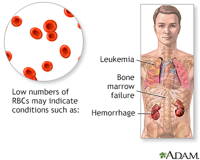 BACK TOTOP Browse A-ZSearchBrowse A-ZABCDEFGHIJKLMNOPQRSTUVWXYZ0-9 E-mail FormEmail ResultsName:Email address:Recipients Name:Recipients address:Message: Print-FriendlyBookmarksbookmarks-menuPalenessSkin - pale or gray; PallorPaleness is an abnormal loss of color from normal skin or mucous membranes.Mucous membranesMucosa is moist tissue that lines certain parts of the inside of your body. It is in your: NoseMouthLungsDigestive tractUrinary and genital tracts G...ImageRead Article Now Book Mark Article Considerations Unless pale skin is accompanied by pale lips, tongue, palms of the hands, inside of the mouth, and lining of the eyes, it is probably not a serious condition and does not require treatment.General paleness affects the entire body. It is most easily seen on the face, lining of the eyes, inner mouth, and nails. Local paleness usually affects a single limb.How easily paleness is diagnosed varies with skin color and the thickness and amount of blood vessels in the tissue under the skin. Sometimes it is only a lightening of skin color. Paleness may be difficult to detect in a dark-skinned person and is detected only in the eye and mouth lining. Causes Paleness may be the result of decreased blood supply to the skin. It can also be due to decreased number of red blood cells (anemia). Paleness of the skin is not the same as loss of pigment from the skin. Paleness is related to blood flow in the skin rather than deposit of melanin in the skin.Paleness can be caused by:Anemia (blood loss, poor nutrition, or underlying disease) AnemiaAnemia is a condition in which the body does not have enough healthy red blood cells. Red blood cells provide oxygen to body tissues. Different type...ImageRead Article Now Book Mark Article Blood lossBleeding is the loss of blood. Bleeding may be:Inside the body (internal)Outside the body (external)Bleeding may occur:Inside the body when blood le...ImageRead Article Now Book Mark Article Problems with the circulatory system Shock ShockShock is a life-threatening condition that occurs when the body is not getting enough blood flow. Lack of blood flow means the cells and organs do n...ImageRead Article Now Book Mark Article Fainting FaintingFainting is a brief loss of consciousness due to a drop in blood flow to the brain. The episode most often lasts less than a couple of minutes and y...Read Article Now Book Mark Article Frostbite FrostbiteFrostbite is damage to the skin and underlying tissues caused by extreme cold. Frostbite is the most common freezing injury.ImageRead Article Now Book Mark Article Low blood sugar Low blood sugarLow blood sugar is a condition that occurs when the body's blood sugar (glucose) decreases and is too low. Blood sugar below 70 mg/dL (3. 9 mmol/L) i...ImageRead Article Now Book Mark Article Chronic (long-term) diseases including infection and cancer ChronicChronic refers to something that continues over an extended period of time. A chronic condition is usually long-lasting and does not easily or quick...ImageRead Article Now Book Mark Article CancerCancer is the uncontrolled growth of abnormal cells in the body. Cancerous cells are also called malignant cells.ImageRead Article Now Book Mark Article Certain medicines Certain vitamin deficiencies When to Contact a Medical Professional Call your health care provider or 911 or the local emergency number if a person suddenly develops generalized paleness. Emergency action may be needed to maintain proper blood circulation.Also call your provider if paleness is accompanied by shortness of breath, blood in the stool, or other unexplained symptoms. What to Expect at Your Office Visit Your provider will examine you and ask about your medical history and symptoms, including:Did the paleness develop suddenly? Did it happen after reminders of a traumatic event? Traumatic eventMore than 64% of children and teens have experienced a traumatic event by the time they are 18 years old. Traumatic events can be life threatening a...Read Article Now Book Mark Article Are you pale all over or only in one part of the body? If so, where? What other symptoms do you have? For example, do you have pain, shortness of breath, blood in the stool, or are you vomiting blood? Shortness of breathBreathing difficulty may involve:Difficult breathing Uncomfortable breathingFeeling like you are not getting enough airImageRead Article Now Book Mark Article Blood in the stoolBlack or tarry stools with a foul smell are a sign of a problem in the upper digestive tract. It most often indicates that there is bleeding in the ...ImageRead Article Now Book Mark Article Vomiting bloodVomiting blood is regurgitating (throwing up) contents of the stomach that contains blood. Vomited blood may appear bright red, dark red, or look lik...Read Article Now Book Mark Article Do you have a pale arm, hand, leg or foot, and cannot feel a pulse in the area? PulseThe pulse is the number of heartbeats per minute.ImageRead Article Now Book Mark Article Tests that may be ordered include:Extremity arteriography Extremity arteriographyExtremity angiography is a test used to see the arteries in the hands, arms, feet, or legs. It is also called peripheral angiography. Angiography u...Read Article Now Book Mark Article CBC (complete blood count) CBCA complete blood count (CBC) test measures the following:The number of white blood cells (WBC count)The number of red blood cells (RBC count)The numb...ImageRead Article Now Book Mark Article Blood differential Blood differentialThe blood differential test measures the percentage of each type of white blood cell (WBC) that you have in your blood. It also reveals if there are...ImageRead Article Now Book Mark Article Thyroid function tests Thyroid function testsThyroid function tests are used to check whether your thyroid is working normally. The most common thyroid function tests are:Free T4 (free thyroxine...ImageRead Article Now Book Mark Article Colonoscopy to check for bleeding in the large int