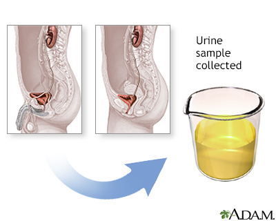 BACK TOTOP Browse A-ZSearchBrowse A-ZABCDEFGHIJKLMNOPQRSTUVWXYZ0-9 E-mail FormEmail ResultsName:Email address:Recipients Name:Recipients address:Message: Print-FriendlyBookmarksbookmarks-menuOsmolality urine testThe osmolality urine test measures the concentration of chemicals in urine.Osmolality in the blood can be measured using a blood test.Blood testOsmolality blood test is a test that measures the concentration of all chemical particles found in the fluid part of blood. Osmolality in the urine c...ImageRead Article Now Book Mark Article How the Test is Performed A clean-catch urine sample is needed. The clean-catch method is used to prevent germs from the penis or vagina from getting into a urine sample. To collect your urine, your health care provider may give you a special clean-catch kit that contains a cleansing solution and sterile wipes. Follow instructions exactly.Clean-catch urine sampleA clean catch is a method of collecting a urine sample to be tested. The clean-catch urine method is used to prevent germs from the penis or vagina ...ImageRead Article Now Book Mark Article How to Prepare for the Test Your provider may tell you that you need to limit your fluid intake 12 to 14 hours before the test.Your provider will ask you to temporarily stop taking any medicines that may affect the test results. Be sure to tell your provider about all the medicines you take, including dextran and sucrose. Do not stop taking any medicine before talking to your provider.Other things can also affect the test results. Tell your provider if you recently:Had any type of anesthesia for an operation. Received intravenous dye (contrast medium) for an imaging test such as a CT scan or MRI. CT scanA computed tomography (CT) scan is an imaging method that uses x-rays to create pictures of cross-sections of the body. Related tests include:Abdomin...ImageRead Article Now Book Mark Article MRIA magnetic resonance imaging (MRI) scan is an imaging test that uses powerful magnets and radio waves to create pictures of the body. It does not us...ImageRead Article Now Book Mark Article Used herbs or natural remedies, especially Chinese herbs. How the Test will Feel The test involves normal urination. There is no discomfort. Why the Test is Performed This test helps check your body's water balance and urine concentration.Urine osmolality is a more exact measurement of urine concentration than the urine specific gravity test.Urine specific gravityUrine specific gravity is a laboratory test that shows the total concentration of all chemical particles in the urine.ImageRead Article Now Book Mark Article Normal Results Normal values are as follows:Random specimen: 50 to 1200 mOsm/kg (50 to 1200 mmol/kg) 12 to 14 hour fluid restriction: Greater than 850 mOsm/kg (850 mmol/kg)Normal value ranges may vary slightly among different laboratories. Some labs use different measurements or test different samples. Talk to your provider about the meaning of your specific test results. What Abnormal Results Mean Abnormal results are indicated as follows:Higher than normal osmolality may indicate:Adrenal glands do not produce enough hormones (Addison disease or other types of adrenal insufficiency) Addison diseaseAddison disease is a disorder that causes the adrenal glands to not produce enough hormones.ImageRead Article Now Book Mark Article Glucose (a type of sugar) in the urine Heart failure Heart failureHeart failure is a condition in which the heart is no longer able to pump oxygen-rich blood to the rest of the body efficiently. This causes symptom...ImageRead Article Now Book Mark Article High sodium level in the blood Loss of body fluids (dehydration) Loss of body fluidsDehydration occurs when your body does not have as much water and fluids as it needs. Dehydration can be mild, moderate, or severe, based on how much...ImageRead Article Now Book Mark Article Narrowing of the kidney artery (renal artery stenosis) Shock ShockShock is a life-threatening condition that occurs when the body is not getting enough blood flow. Lack of blood flow means the cells and organs do n...ImageRead Article Now Book Mark Article Syndrome of inappropriate ADH secretion (SIADH) SIADHSyndrome of inappropriate antidiuretic hormone secretion (SIADH) is a condition in which the body makes too much antidiuretic hormone (ADH). ADH is ...Read Article Now Book Mark Article Lower than normal osmolality may indicate:Damage to kidney tubule cells (renal tubular necrosis) Renal tubular necrosisAcute tubular necrosis (ATN) is a kidney disorder involving damage to the tubule cells of the kidneys, which can lead to acute kidney failure. The t...ImageRead Article Now Book Mark Article Diabetes insipidus Diabetes insipidusDiabetes insipidus (DI) is an uncommon condition in which the kidneys are unable to prevent the excretion of water. DI is not the same as diabetes me...ImageRead Article Now Book Mark Article Drinking too much fluid Kidney failure Low sodium level in the blood Severe kidney infection (pyelonephritis) Risks There are no risks with this test.Open ReferencesReferencesKashkouli A, Berl T, Sands JM. Disorders of water metabolism. In: Johnson RJ, Floege J, Tonelli M, eds. Comprehensive Clinical Nephrology. 7th ed. Philadelphia, PA: Elsevier; 2024:chap 9.Oh MS, Briefel G, Pincus MR. Evaluation of renal function, water, electrolytes, and acid-base balance. In: McPherson RA, Pincus MR, eds. Henry's Clinical Diagnosis and Management by Laboratory Methods. 24th ed. Philadelphia, PA: Elsevier; 2022:chap 15.AllVideoImagesTogOsmolality test - illustration An osmolality urine test is performed to measure the concentration of particles in urine. Greater than normal results may indicate conditions such as Addison disease, congestive heart failure or shock. Lower-than-normal measurements may indicate aldosteronism, diabetes insipidus, excess fluid intake, renal tubular necrosis or severe pyelonephritis.Osmolality testillustrationFemale urinary tract - illustr